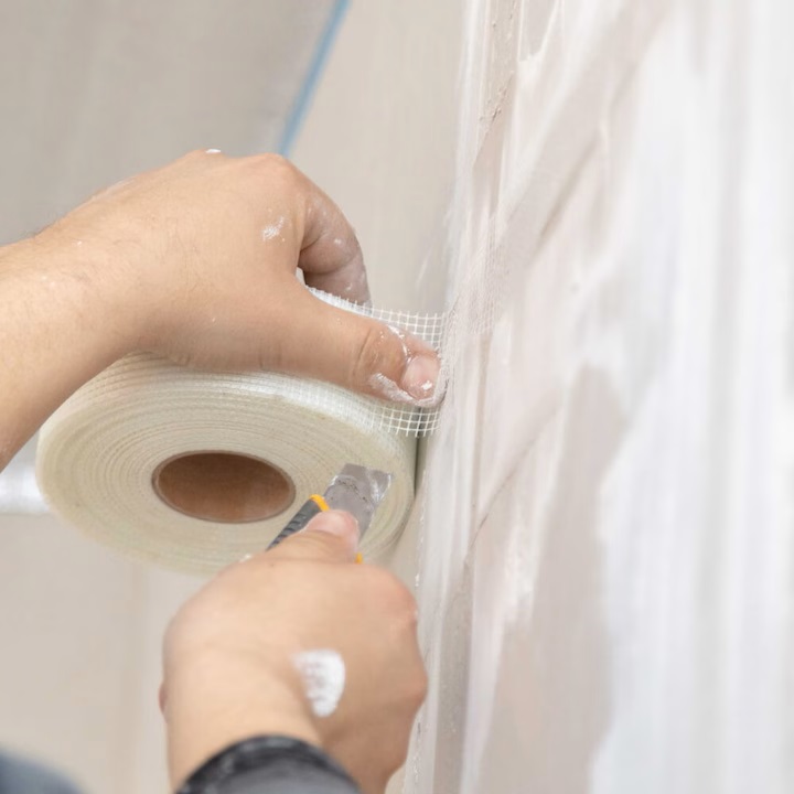 Banda autoadeziva de armare Rodex este alba, realizata din fibra de sticla. Aceasta este caracterizata de rezistenta sporita la umiditate, absorbind putina apa din materialul de chituit si rezistenta la rupere din intindere – ≥40 kN/mm2.